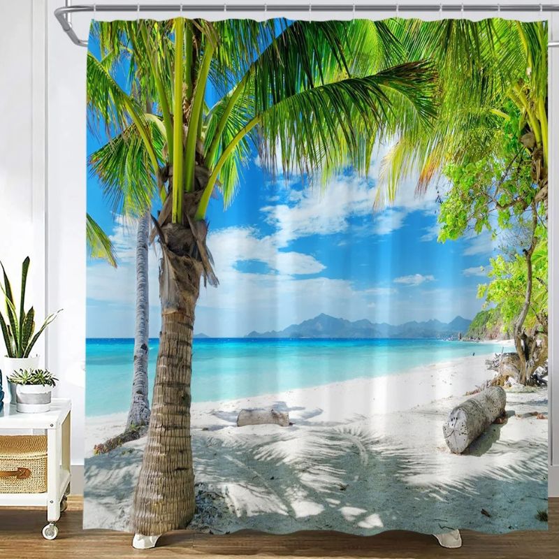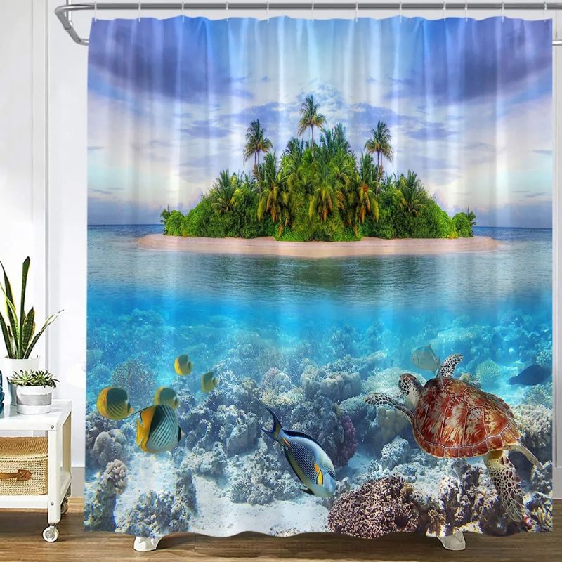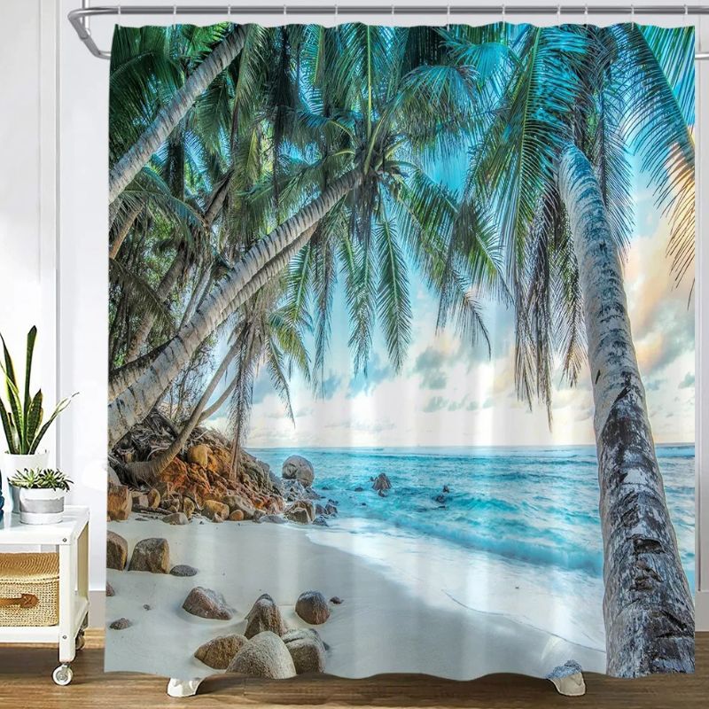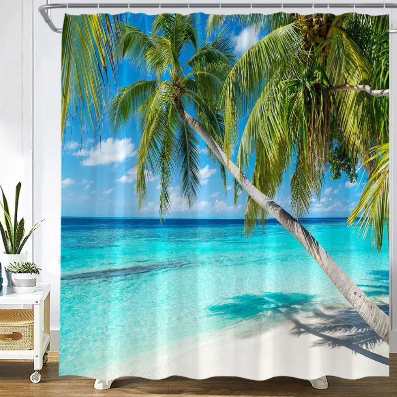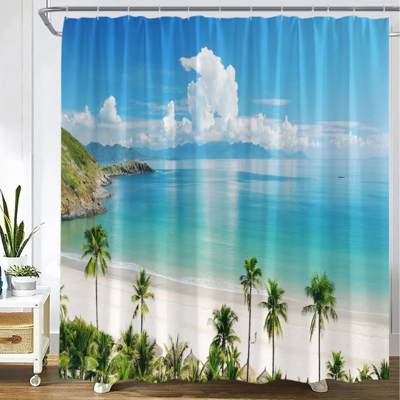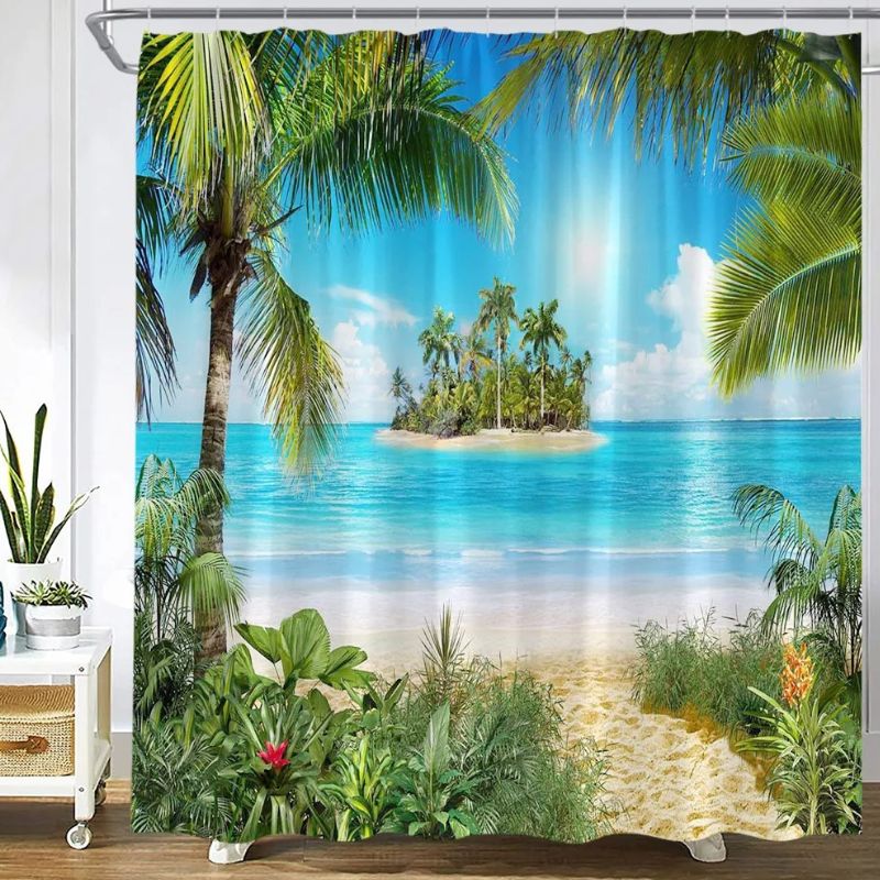 🛒 Apportez une touche de paradis à votre salle de bain avec le rideau de douche "Ile de Rêve" !