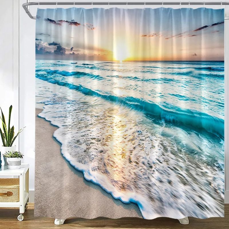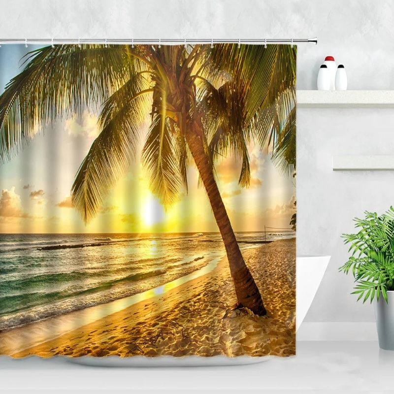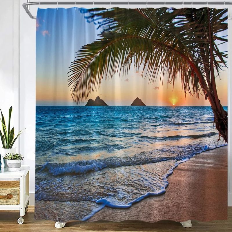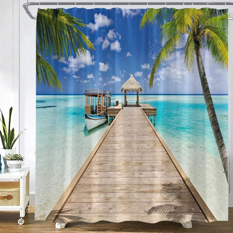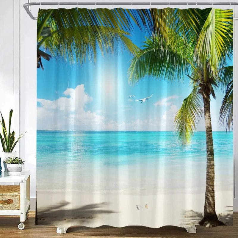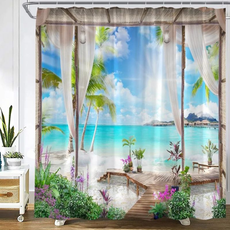🛒 Apportez une touche de paradis à votre salle de bain avec le rideau de douche "Ile de Rêve" !